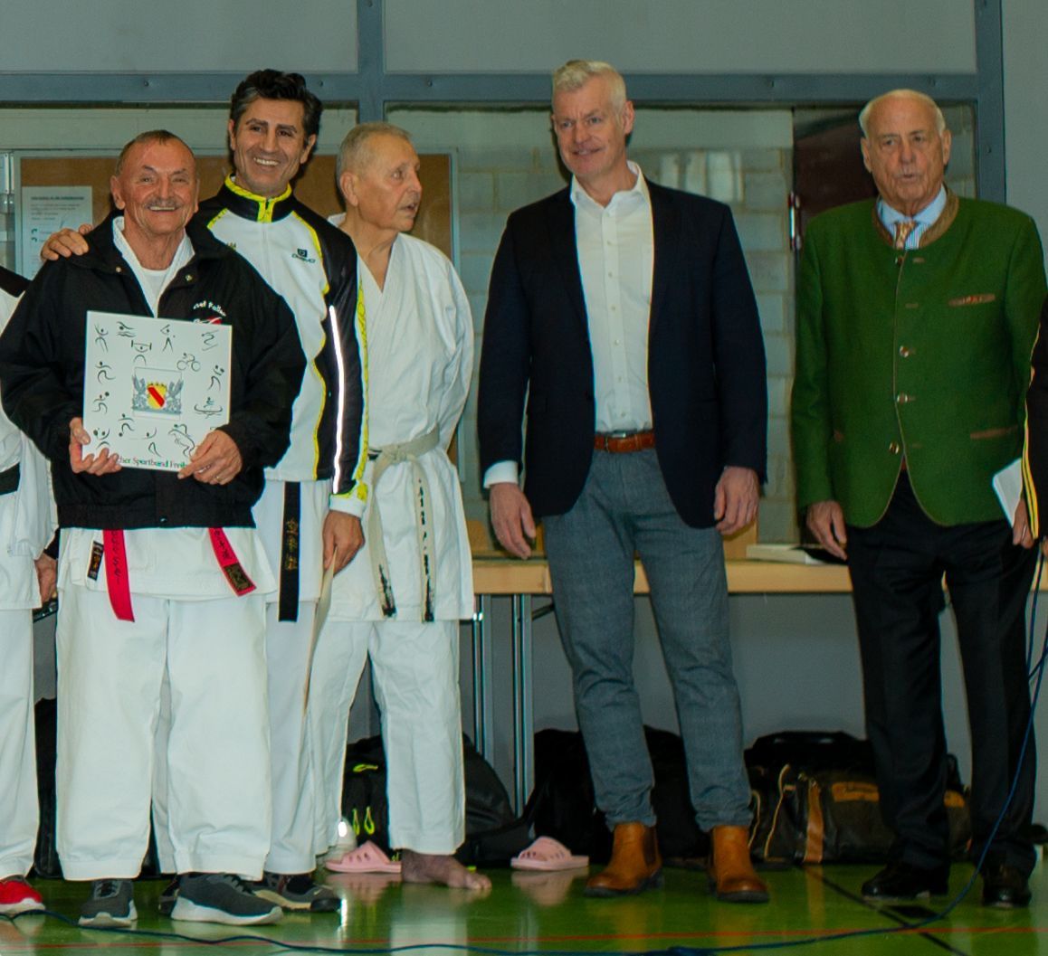 Der Ehrenteller mit dem Badischen Greif in Silber - dem Wappentier des Hauses und Landes Baden - wurde Josef Faller verliehen für seinen unermüdlichen Einsatz und seine ehrenamtliche Tätigkeit. Herr Fleischer dankt dem Karate Dojo Breisach, all seinen ehrenamtlichen Helfern und gratuliert dem Verein zu seinen großartigen Erfolgen sowohl in der Breite als auch an der Spitze.